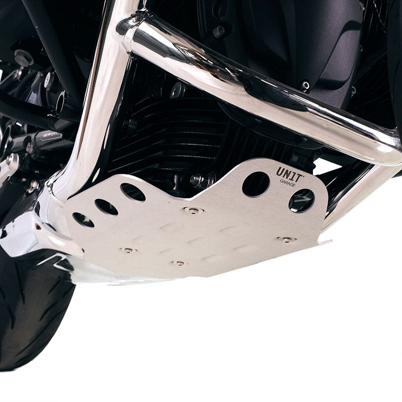 Motorschutz aus eloxiertem Aluminium. Schützt den Motor und die Schalldämpferkrümmer im Gelände.