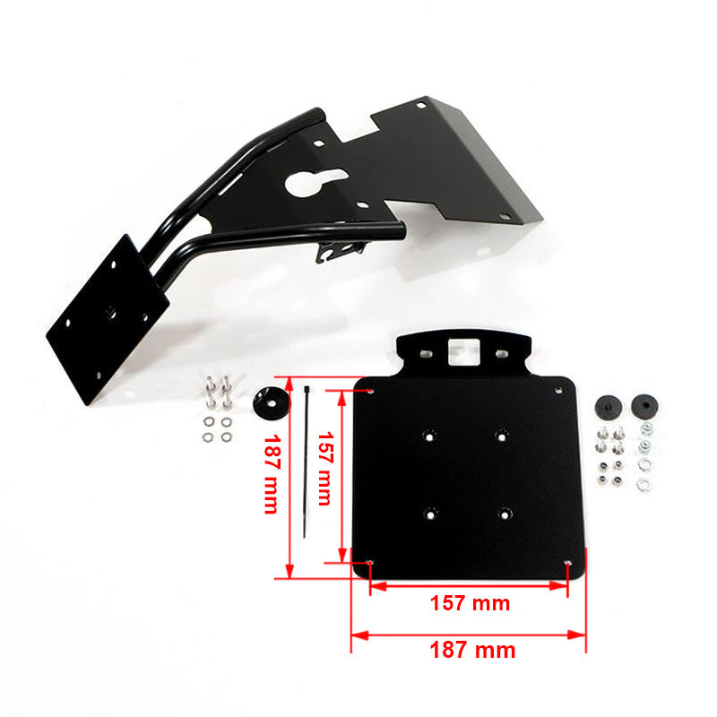 Der originale hintere Kunststoffhalter störte uns, weshalb wir einen praktisch und ästhetisch hochwertigeren Kennzeichenhalter für das Heck entwickelten. Das Ergebnis ist unserer Meinung nach fantastisch! Der Haltearm wurde aus Stahl hergestellt und die Kennzeichenplatte aus Aluminium. Beide Teile wurden anschließend aufwändig pulverbeschichtet. Die Montage ist spielend einfach. Alle Halterungen sind im Lieferumfang enthalten. Die originalen Blinker passen selbstverständlich weiterhin. Der Kennzeichenhalter ist obendrein kompatibel mit unseren Taschenhaltern, Soziusgriff sowie Gepäckträgern.