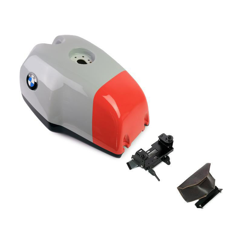 nineT/7-Tank : Der Tankdeckel und die Kraftstoffpumpe bleiben die Originalteile Ihres Motorrads, das Reservelicht funktioniert weiterhin, Sie müssen nichts manipulieren, der Bausatz ist vollständig umkehrbar. Der Nylontank wird komplett lackiert und mit transparenten Aufklebern geliefert. (in der weißen Version müssen sie separat erworben werden) Der originale Aktivkohlefilter (Kanister) bleibt der Originale. Alle Halterungen zur Befestigung des Tanks sind im Bausatz enthalten. Das Fassungsvermögen beträgt 18,5 Liter, der Garagentank nineT/7 Unit wiegt 2 kg weniger als das Original.